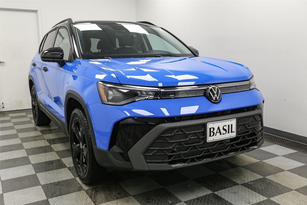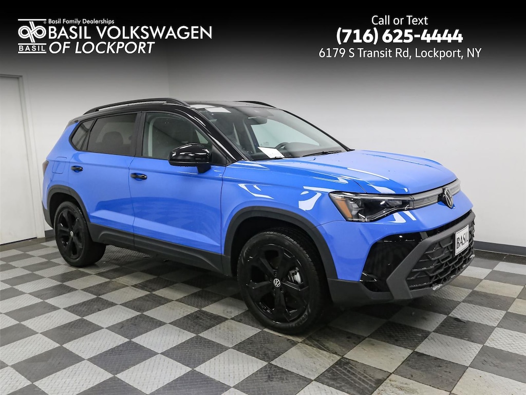 Thank you for choosing Basil Volkswagen of Lockport, this Cornflower Blue w/Deep Black Roof 2025 Volkswagen TaosSE Black is a great choice! Checkout the following:
